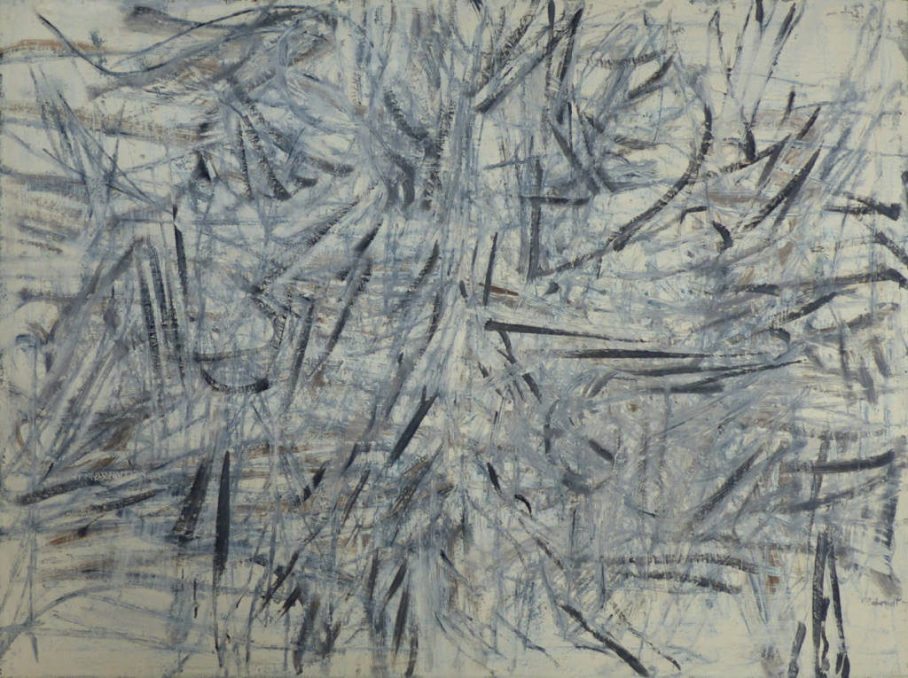 Ohne Titel, 1958. Öl auf grober Leinwand. 97 x 130 cm. Signiert und datiert.